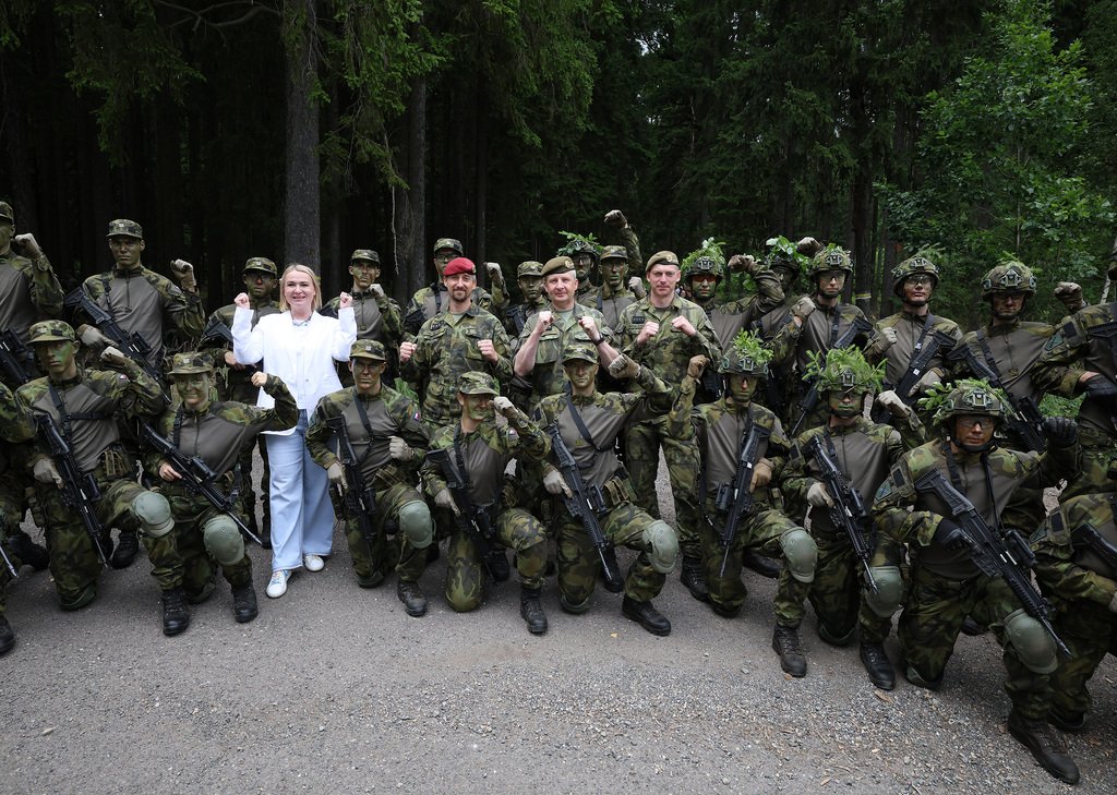 Ministryně Černochová navštívila účastníky dobrovolného vojenského cvičení v Jincích